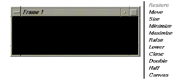 Click the left mouse on the menu portion of the frame. This shows a menu containing the options shown in the figure above.